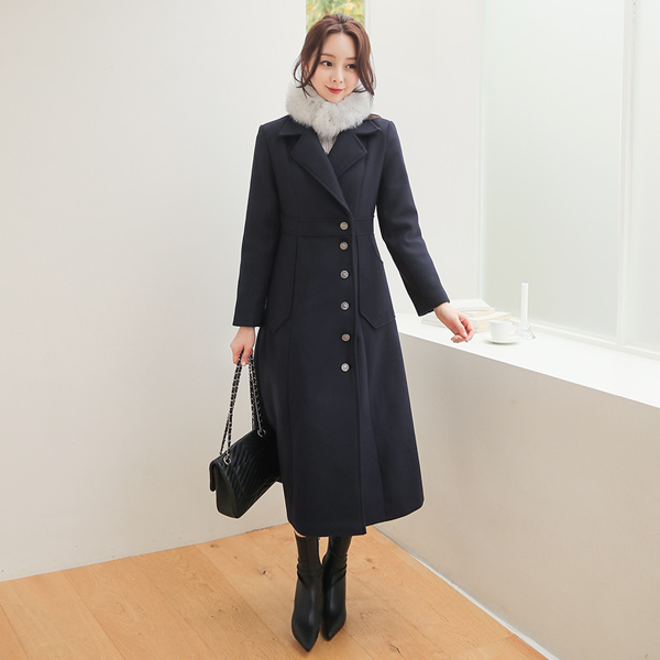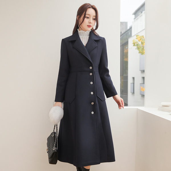 Jane 侧纽扣 超长 喇叭 羊毛大衣