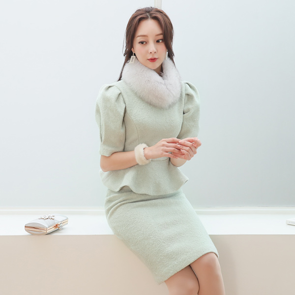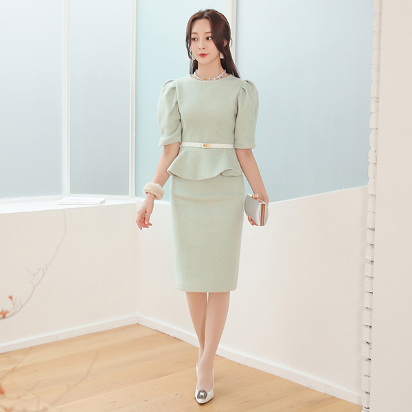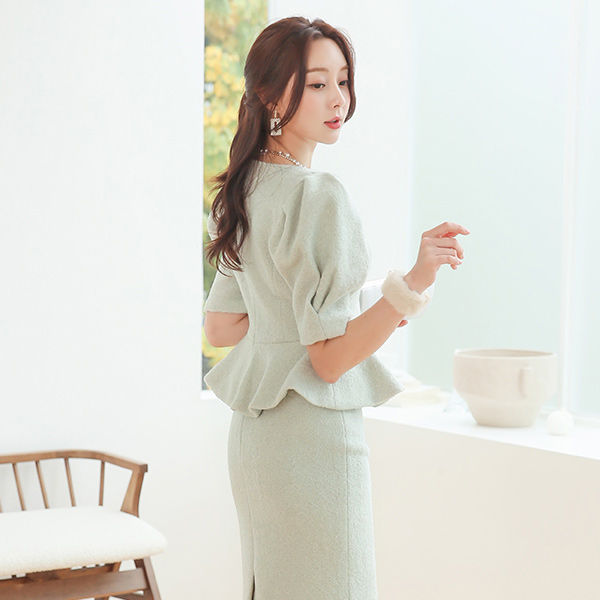 淑女 泡泡袖 荷叶边 结子花式 两件套 SET