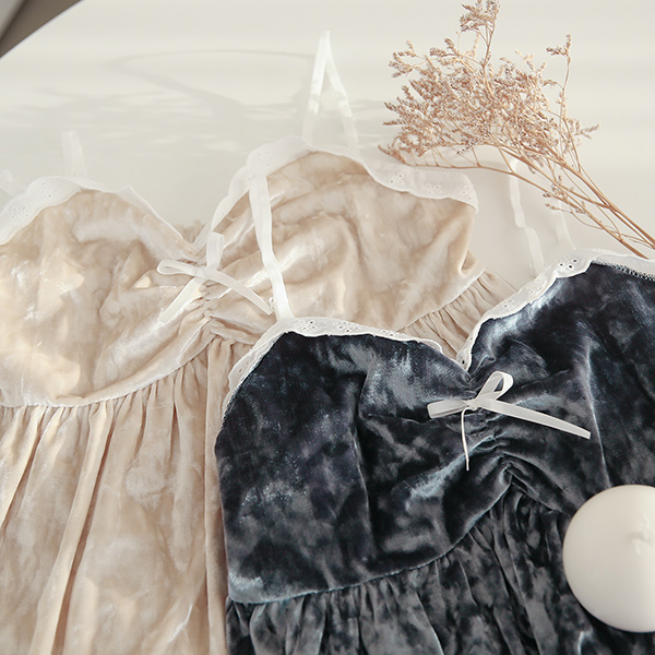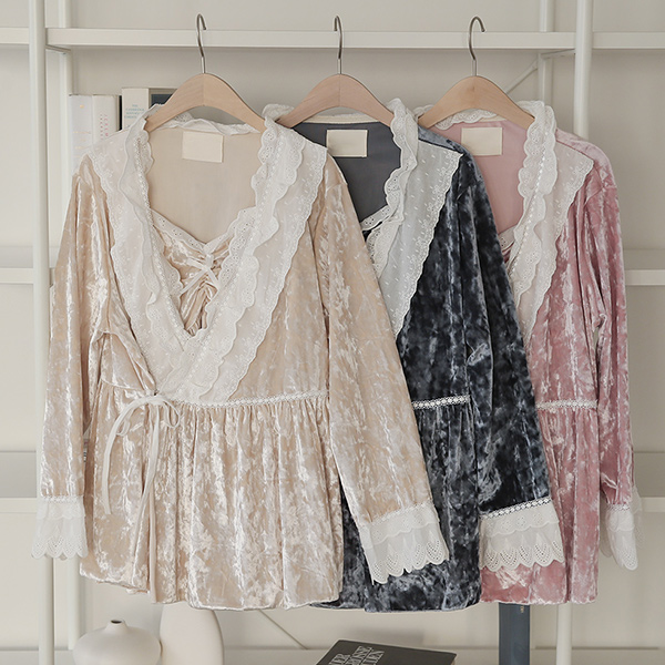 丝绒 印花 蕾丝 白大褂 睡裙 3PCS 睡衣