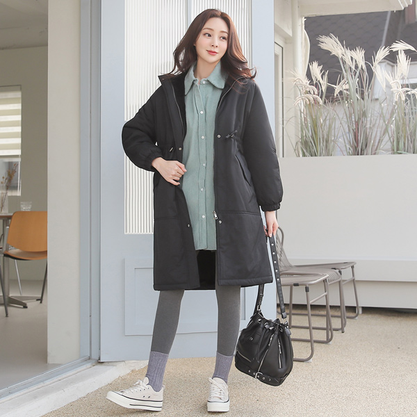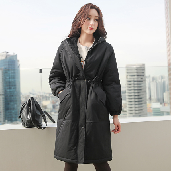 基本 袖 松紧带 抽绳 长款羽绒服(毛皮里料)