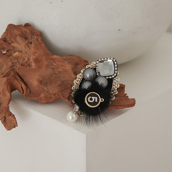 镶钻 花边 貂皮毛 胸针
