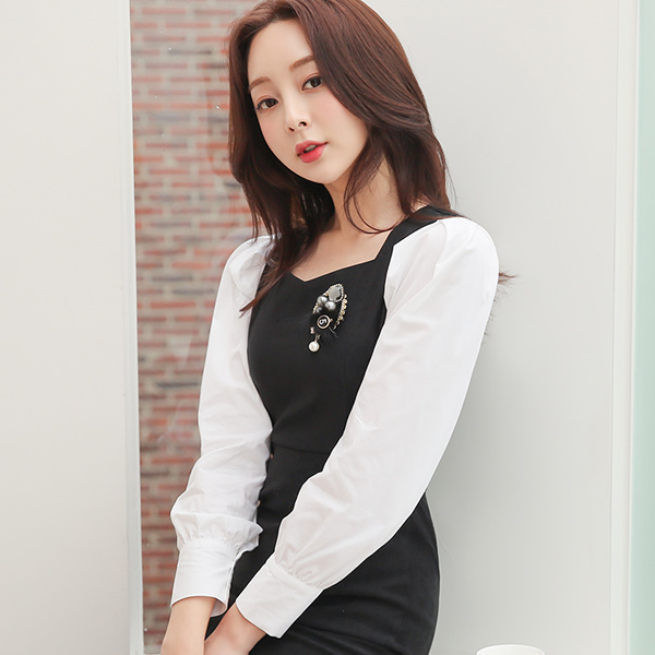 翻毛皮 棉 袖子 修身 美人鱼 连衣裙