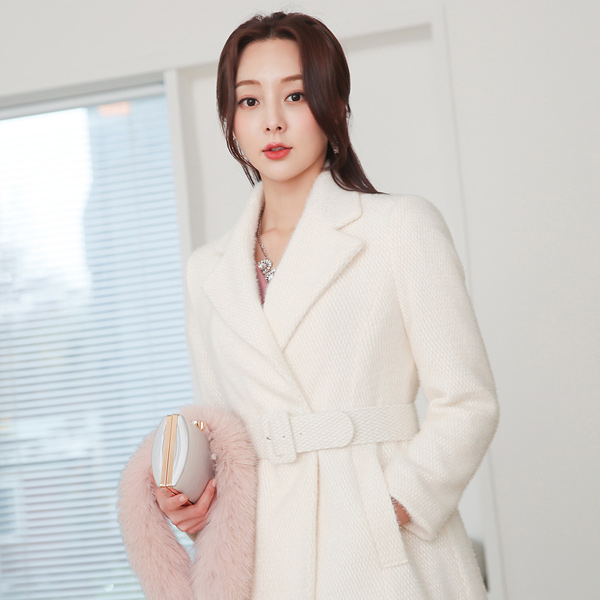 柔丝 貂皮触觉 束带 A字型 羊毛大衣