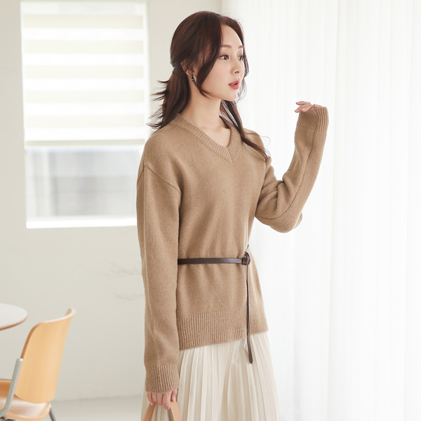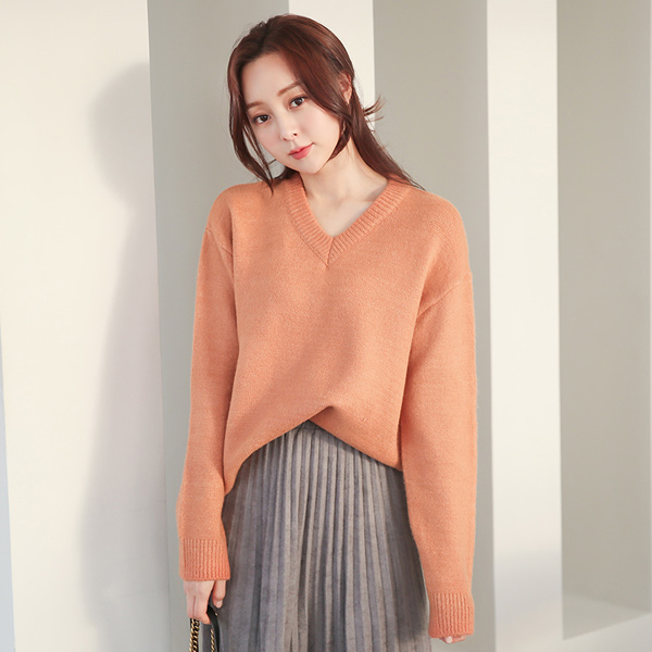 基本 V领 垂肩 针织衫