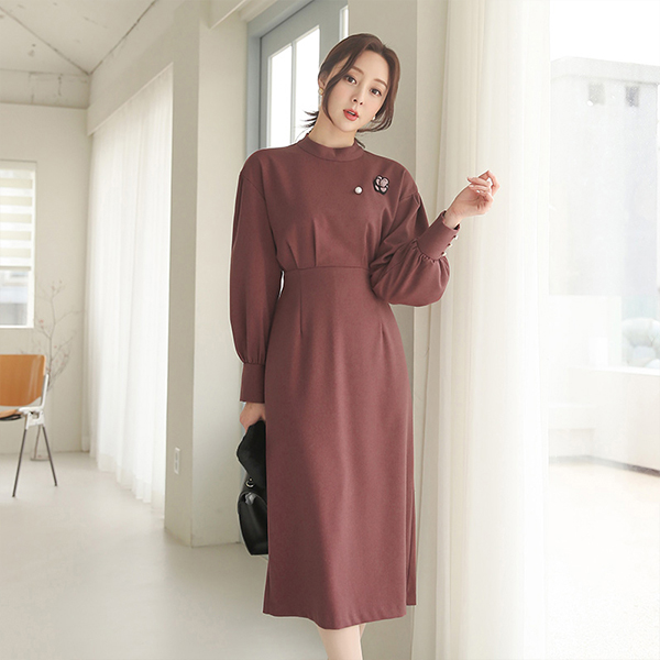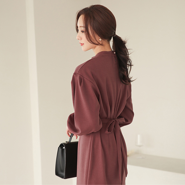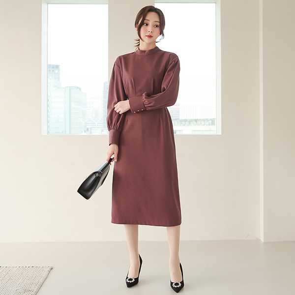 半高领 와이드커프스 泡泡袖 连衣裙