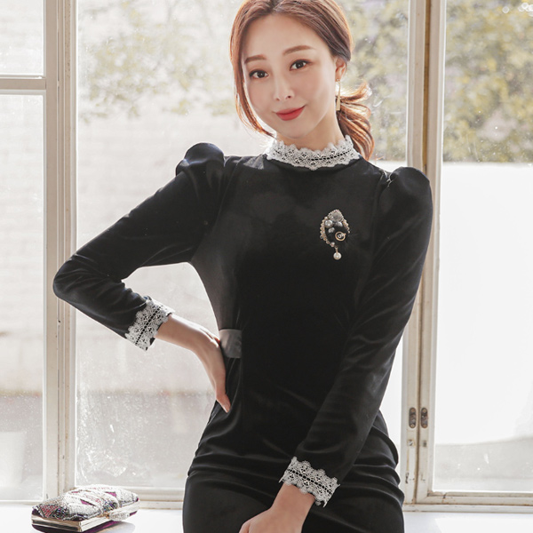 丝绒 蕾丝 花边 绸缎 束带 连衣裙