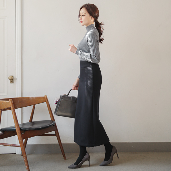 摩登 炫酷 侧纽 嘴唇口袋 长裙