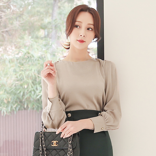 缎子 船形领 链条 项链 罩衫