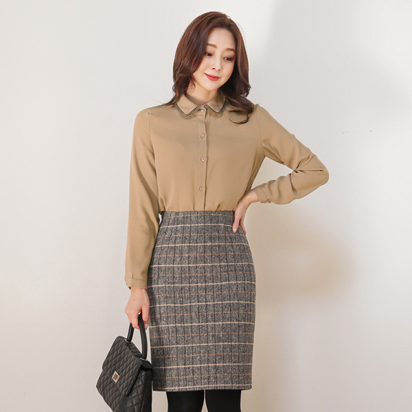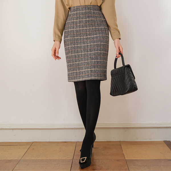人字呢 格子 羊毛 H字型 裙子