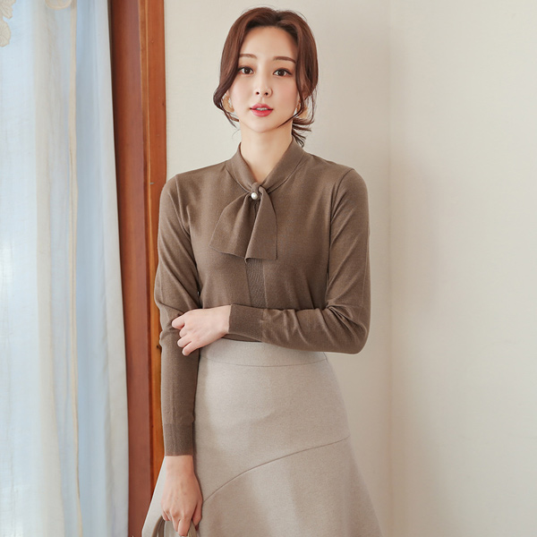 柔丝 珍珠 蝴蝶结领结 钻石纹 针织衫