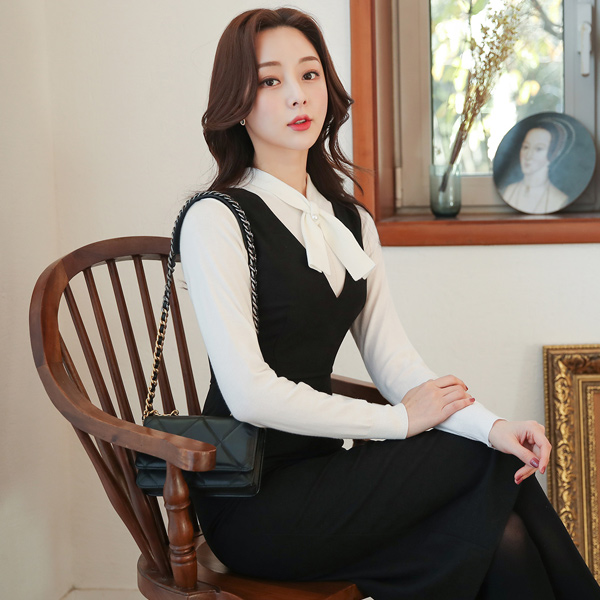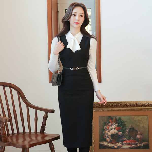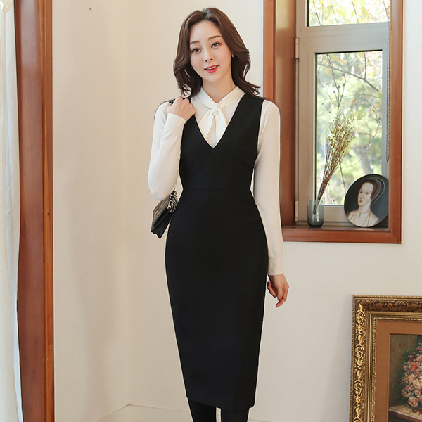 翻毛皮 触摸 深v领 修身 背带 连衣裙
