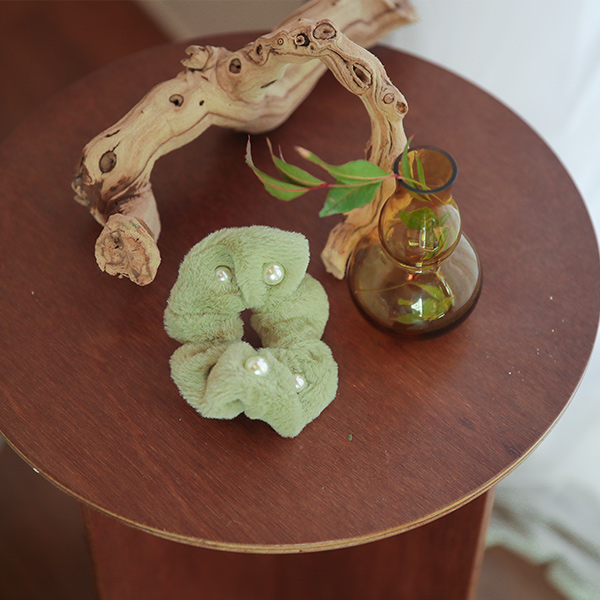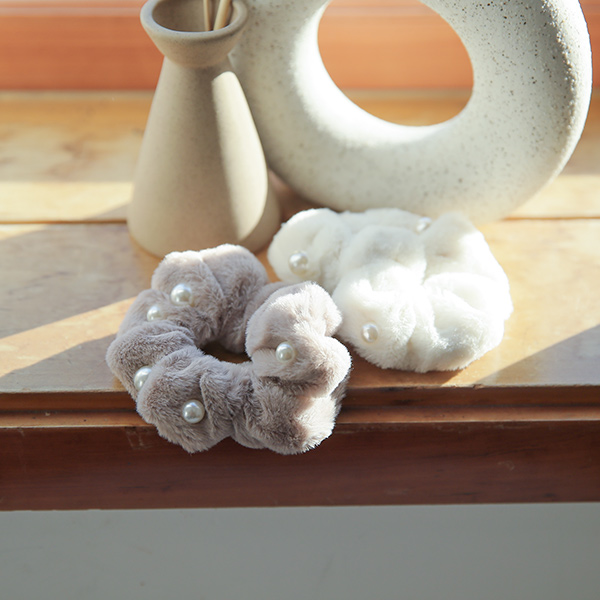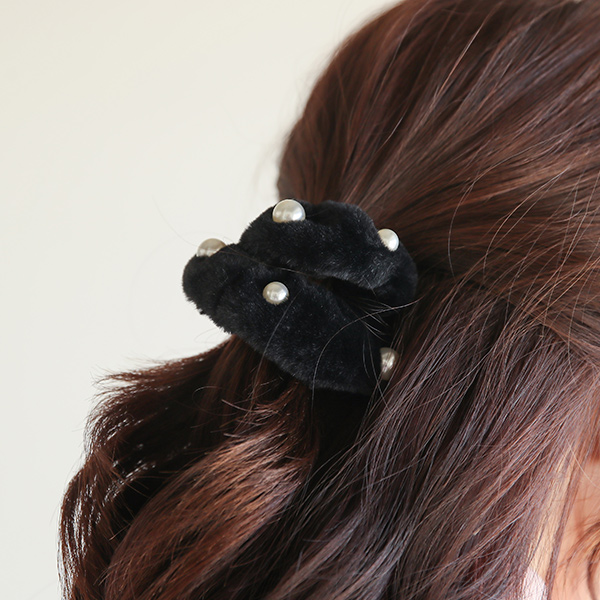 貂皮毛 珍珠 点缀 褶皱 发带
