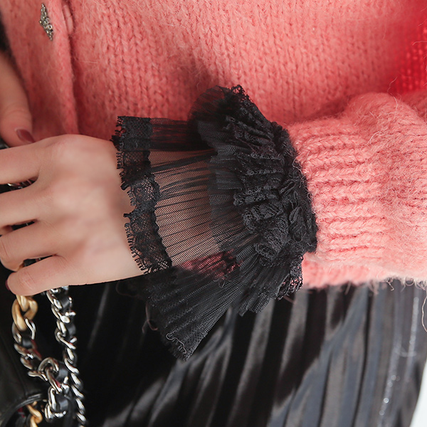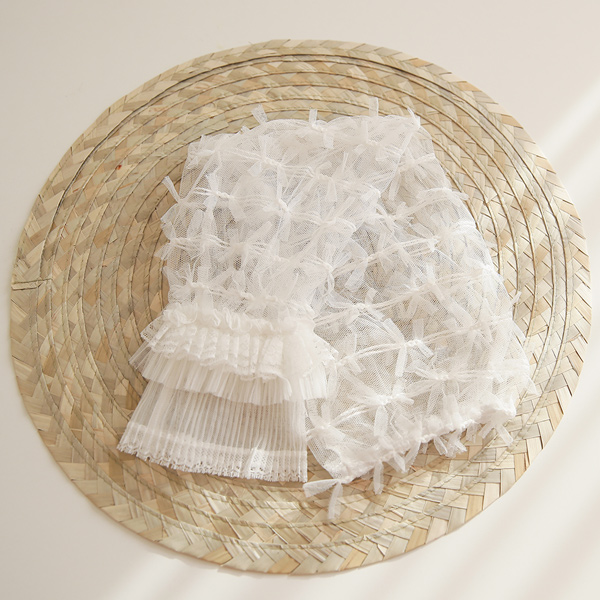 透视 蝴蝶结 褶边 蕾丝 袖口