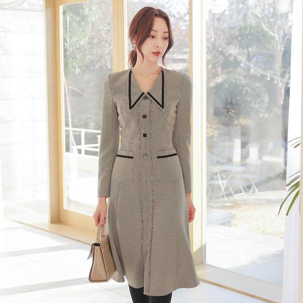 Barrymore 领子 丝绒 绷带 格伦格子呢 连衣裙