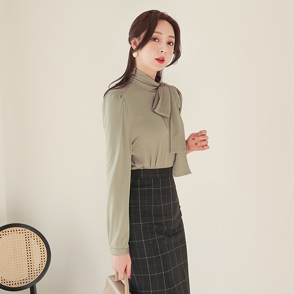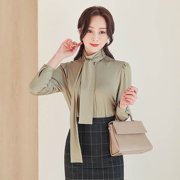 丝滑 围巾领 暗扣 罩衫