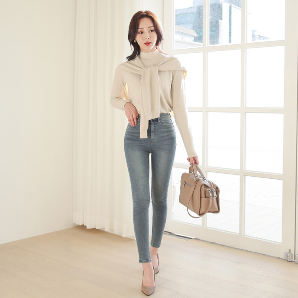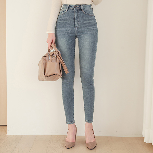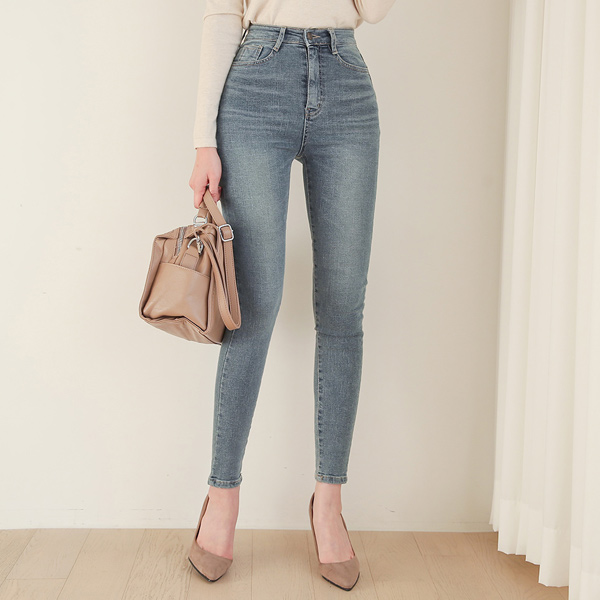 自然 水洗 拉绒 紧身牛仔裤(全长 3type)