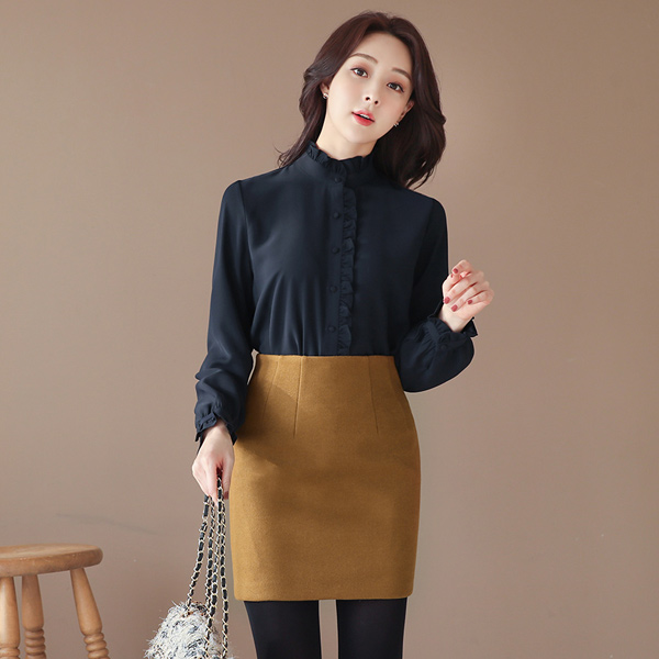 鲜明 羊毛织 高腰 迷你裙