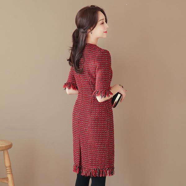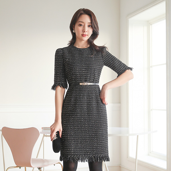 霍利 金珍珠 粗呢 流苏 连衣裙
