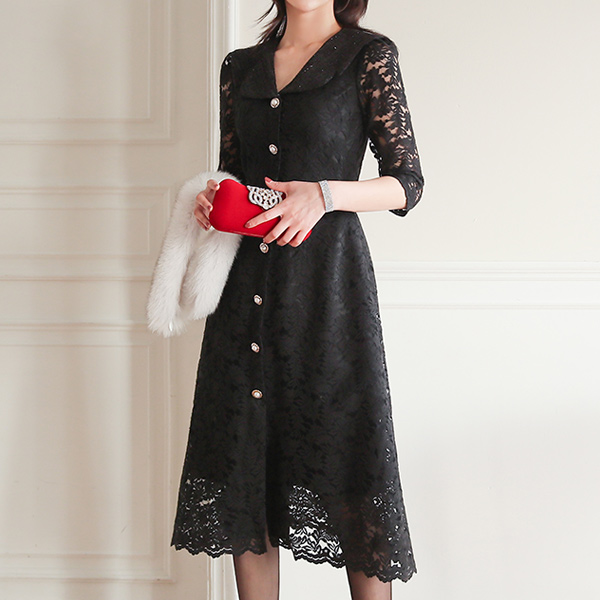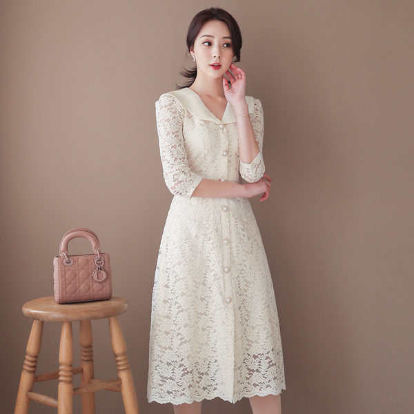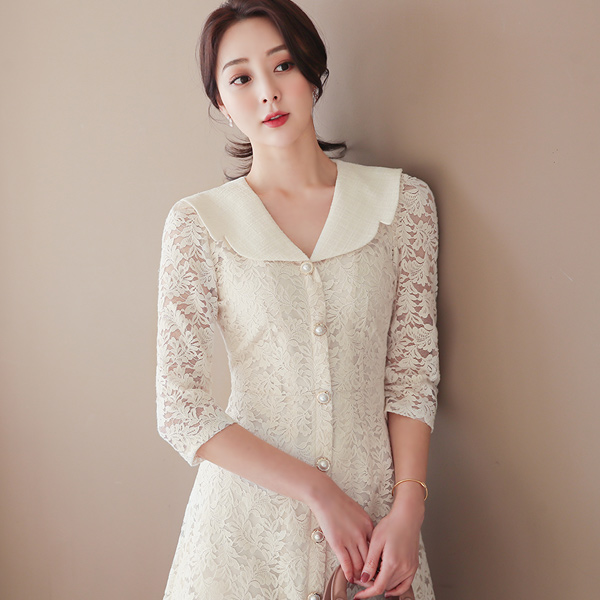 珍珠粗花呢 学院风 珍珠扣 蕾丝 连衣裙