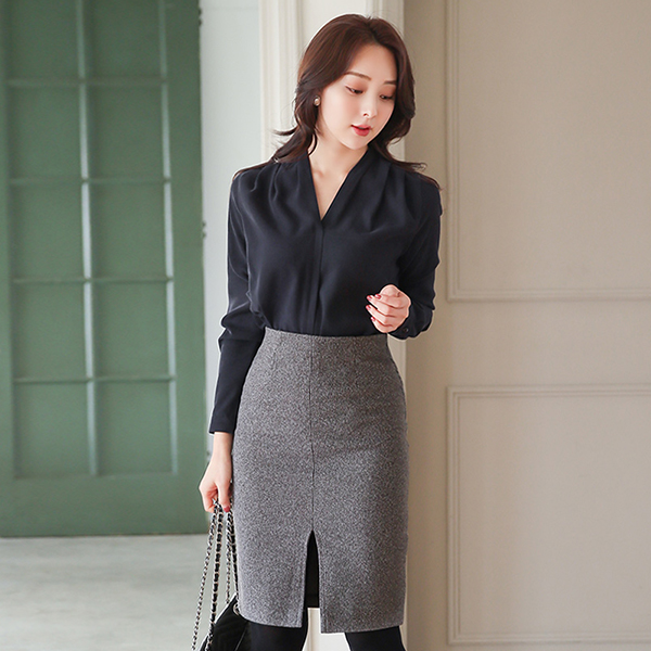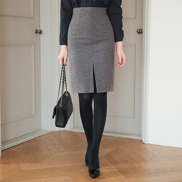 拉绒 格子 开衩 H字型 裙子
