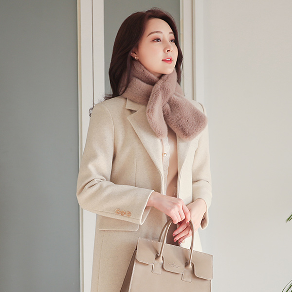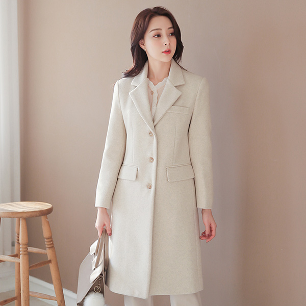 乳白色 柔丝 羊毛混纺 单个 大衣(绗缝里料)