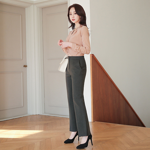 拉绒 弹力 侧纽 开衩 松紧带 喇叭 宽松长裤