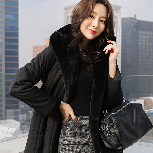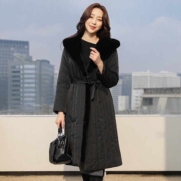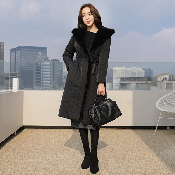 貂皮毛 带帽 绗缝 长款 羽绒服