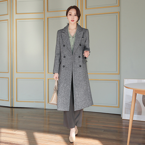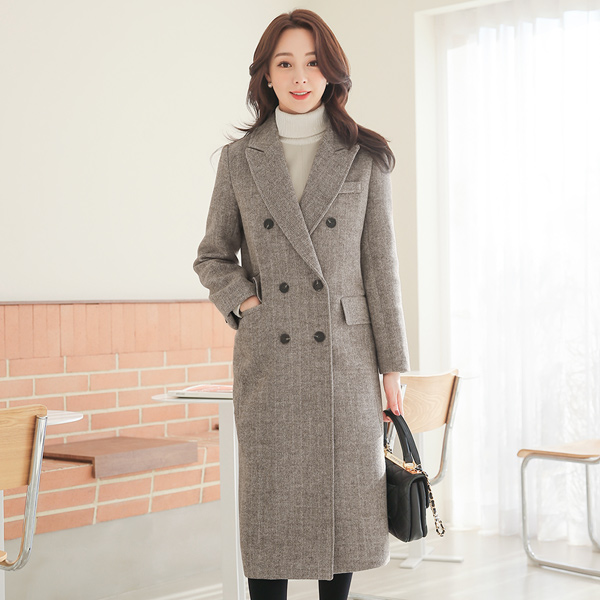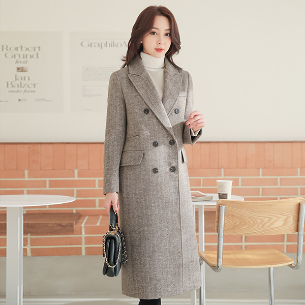 人字呢 双排扣 尖角翻领 羊毛 长款大衣