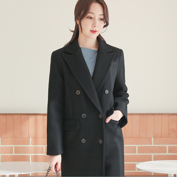 双排扣 尖角翻领 宽松 羊毛 长款大衣