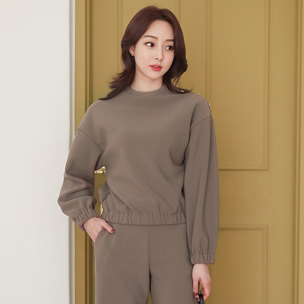 日常 肩膀扣 松紧带 运动衫 T恤衫(밍크퍼안감)