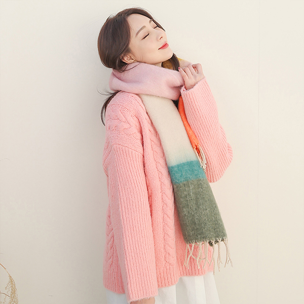 结子花式 麻花 宽松 V字领 羊毛 针织衫