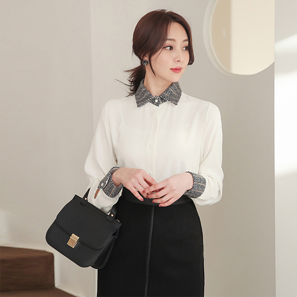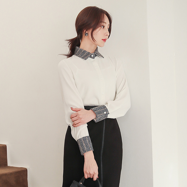 摩登 人字呢 配色 衬衫 领子 罩衫