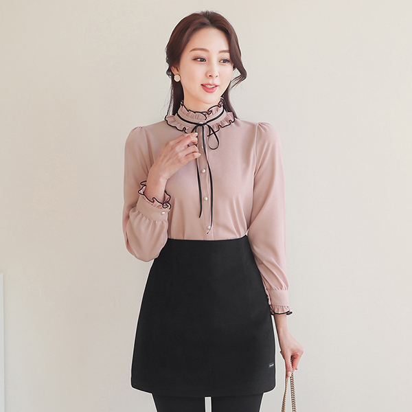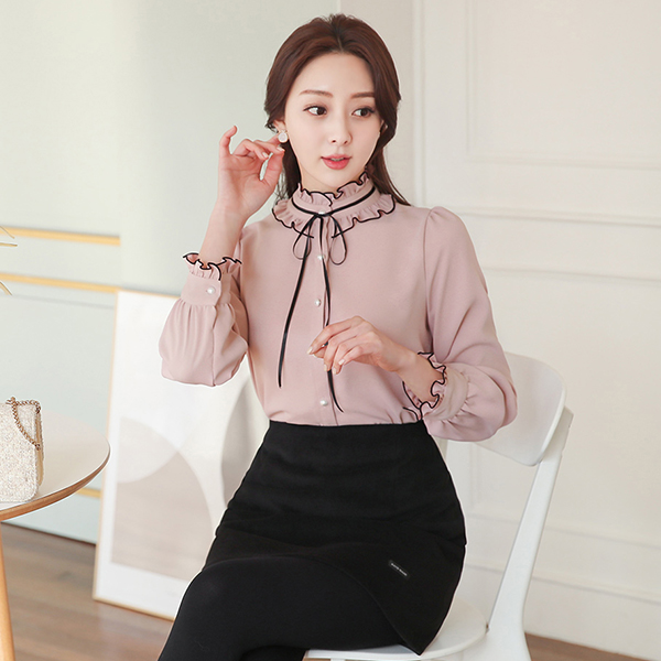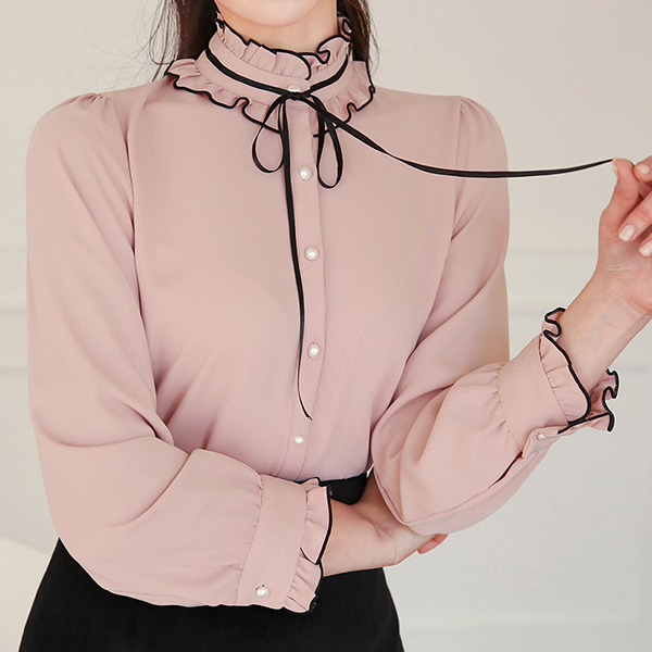 二重 荷叶边领 绷带 珍珠 罩衫