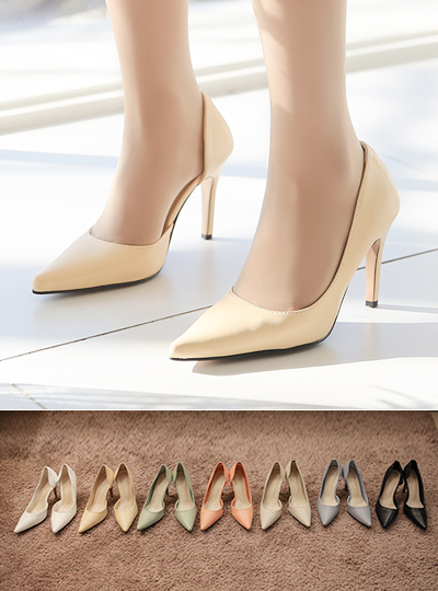 春季 颜色 侧纽 敞开式 尖头高跟鞋