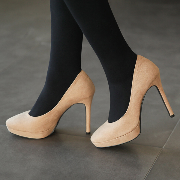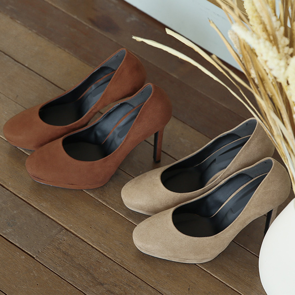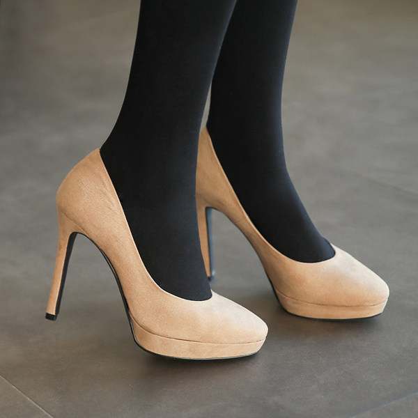 翻毛皮 圆头 防水台高跟鞋