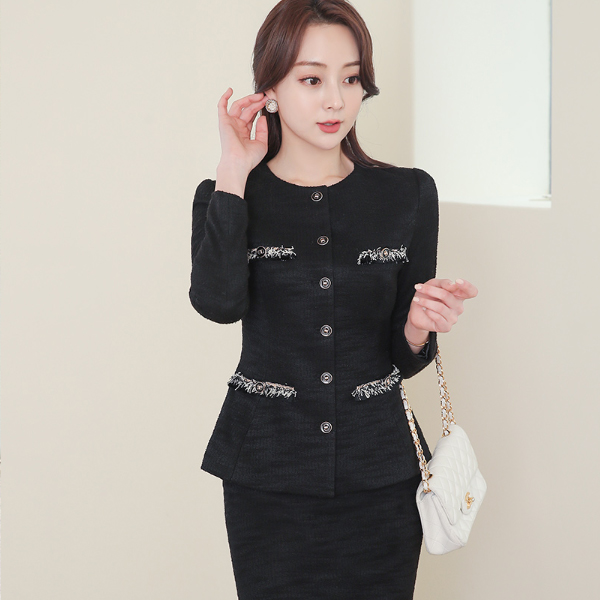 皇家 古风扣 配色 圆领 荷叶边 夹克