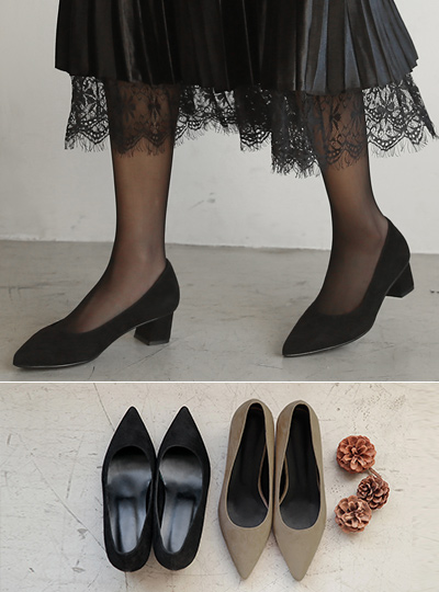翻毛皮 中跟 木跟 浅口式高跟鞋