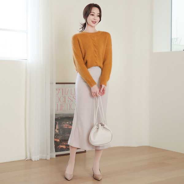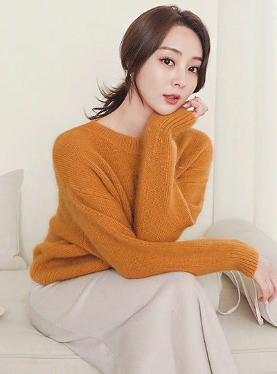 安哥拉 麻花 宽松 圆领 针织衫