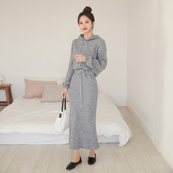7分裤 抽绳 후드탑&裙子 拉绒 运动服 SET