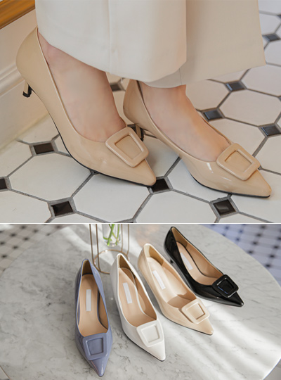方形 光面皮鞋 细高跟 高跟鞋