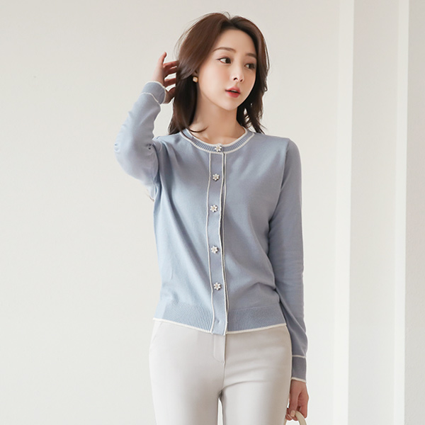 柔色 花纹 珍珠扣 开衫 针织衫