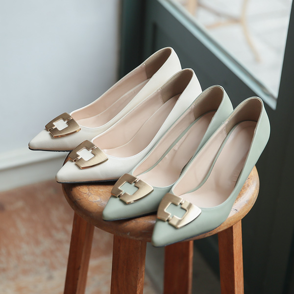金属 Gold 方形 鞋垫 女式浅口便鞋 高跟鞋