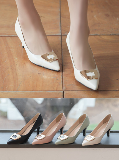 金属 Gold 方形 鞋垫 女式浅口便鞋 高跟鞋
