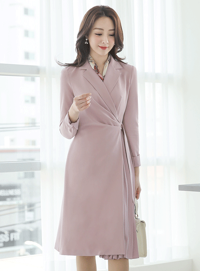 芬奇 褶皱 侧纽 褶边 交叉式连衣裙(spring)