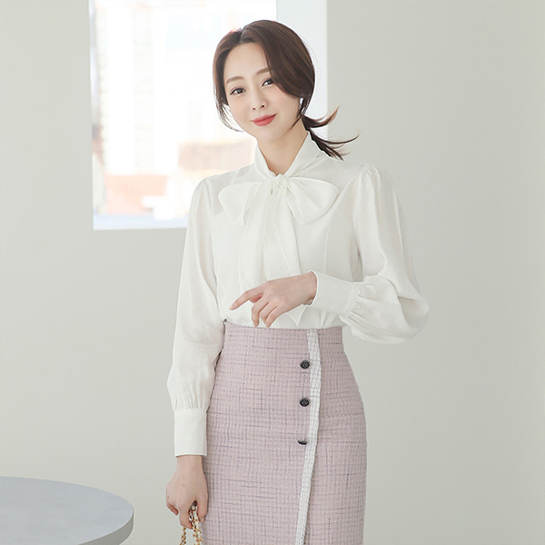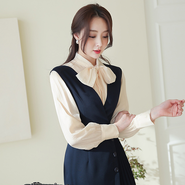 围巾领 珍珠 코튼터칭 罩衫