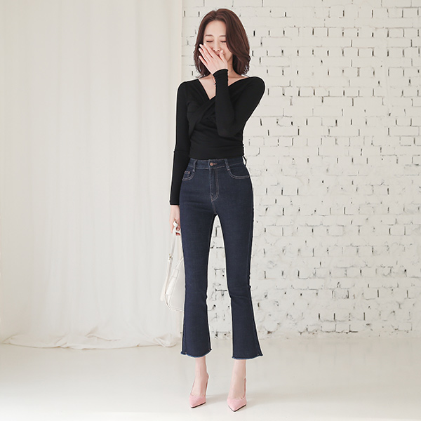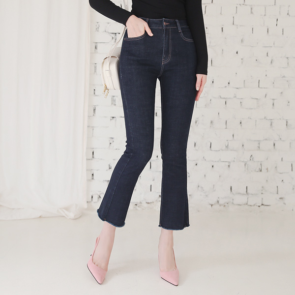 高腰 非水洗 弹力 喇叭 牛仔色 裤子