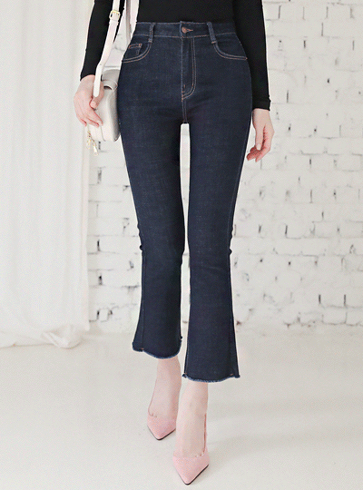 高腰 非水洗 弹力 喇叭 牛仔色 裤子