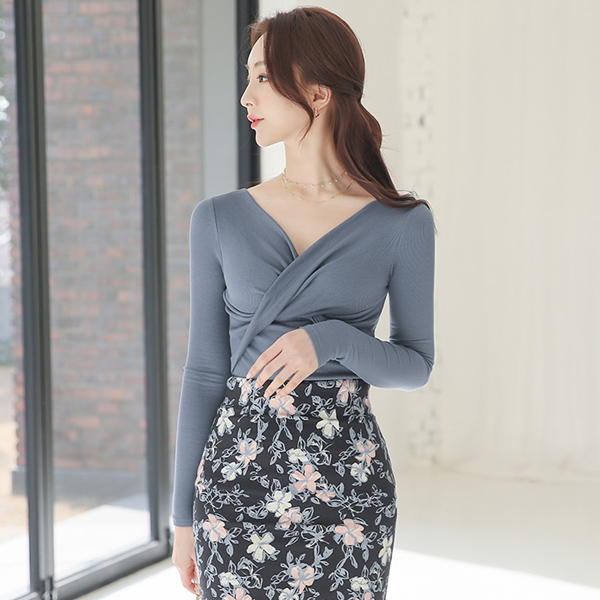 金属 珠光针织 束带 V字领 喇叭 开衫