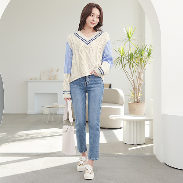 缆绳 针织衫 分层 条纹 衬衫