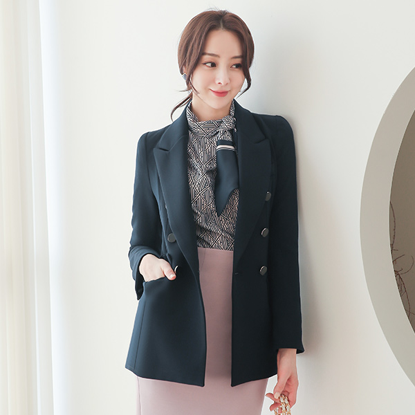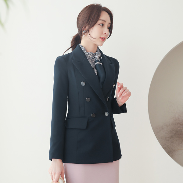 黄金环 扣子 二重 开叉线条 夹克